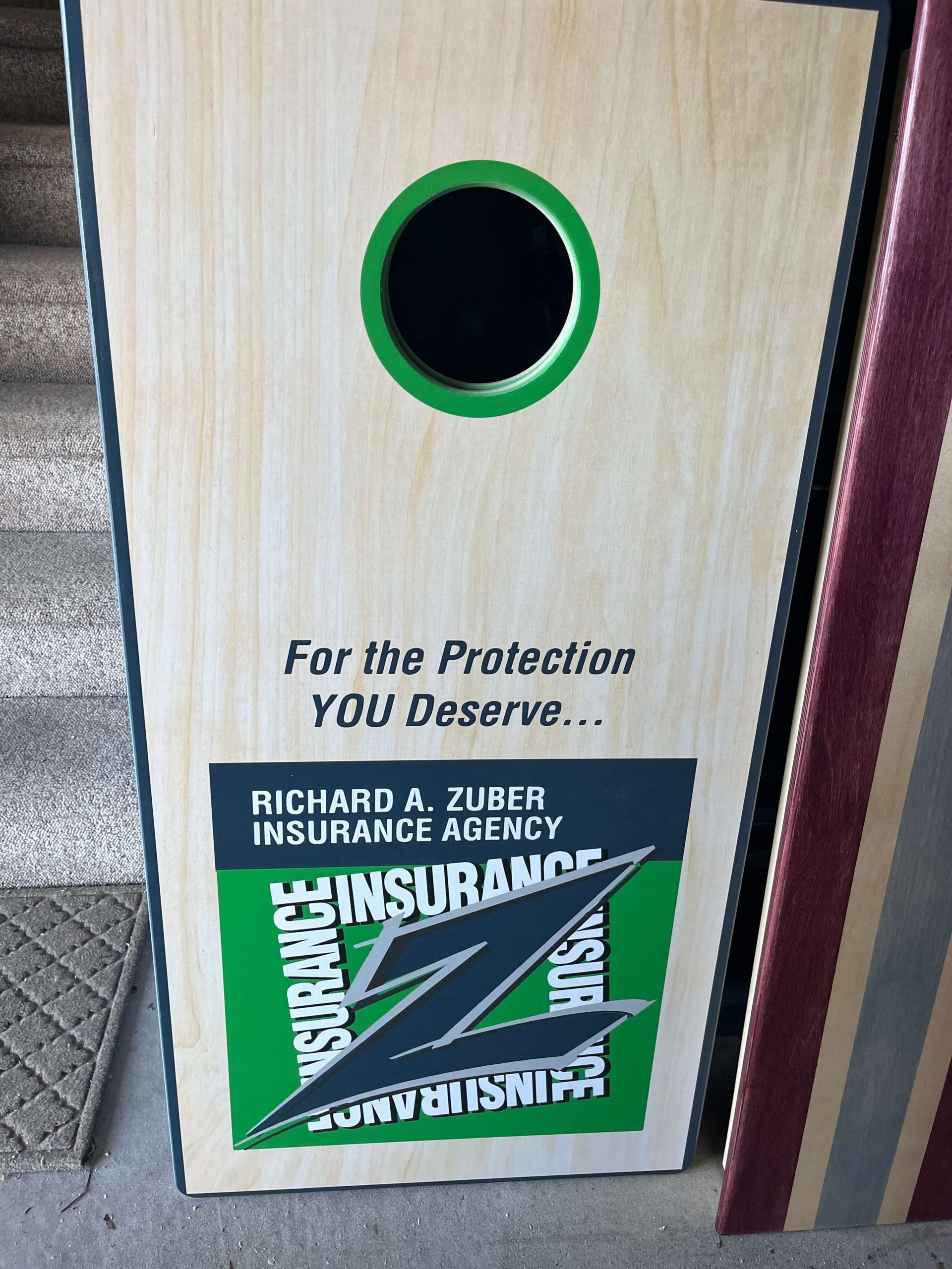 I purchased this custom made corn hole set for my grandson with his school colors and logos. He absolutely loves it. The craftsmanship and quality are excellent , better than any box store. Dealing with Scott was a pleasure.