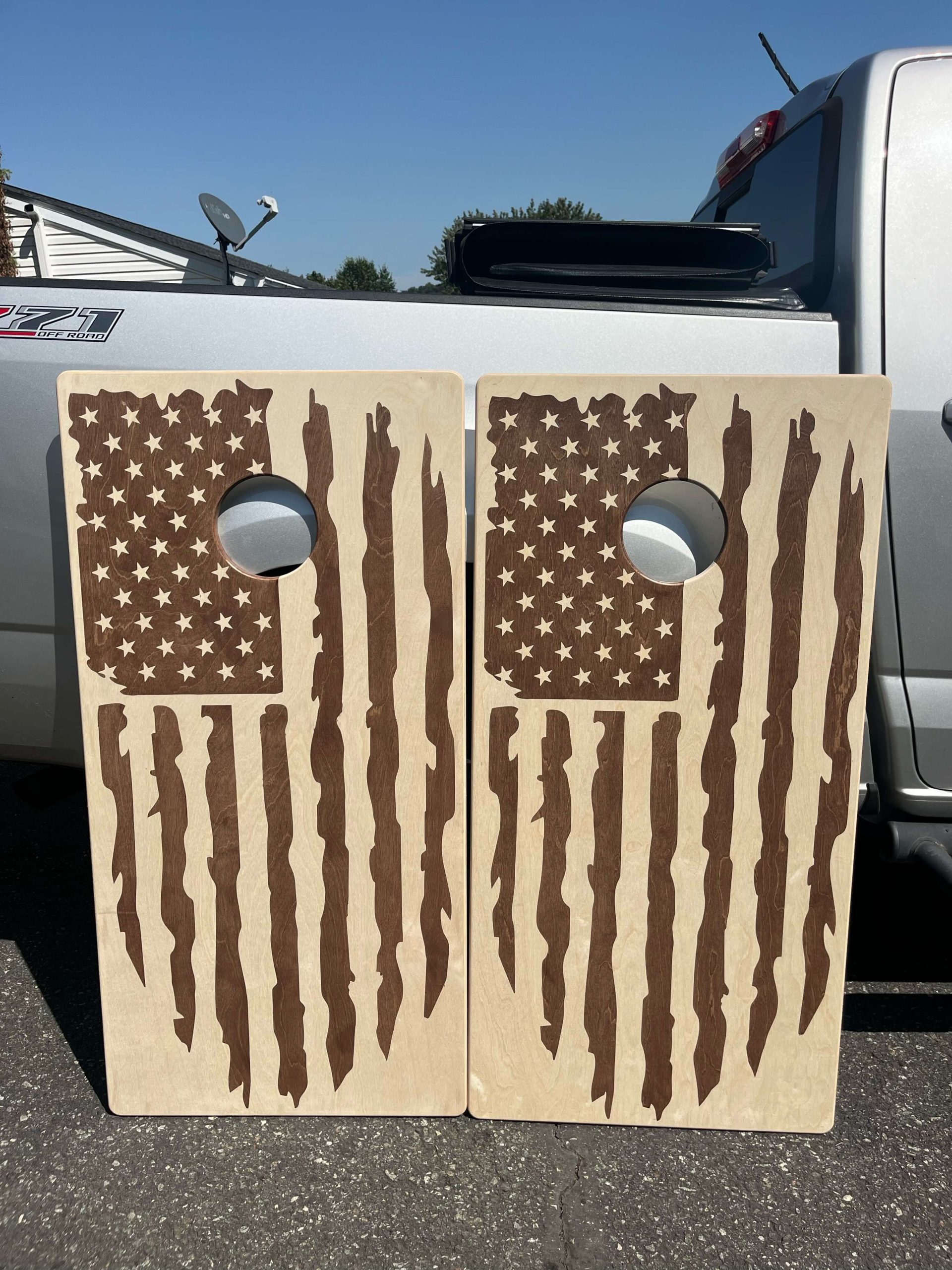 There are several factors that go into making a reliable, high-quality cornhole board that is fair at competition levels. First of all is the quality of the materials. We use 3/4” Baltic Birch, which is both a strong wood and durable enough to last many years. It is a type of wood that is relatively resilient to the elements, meaning it’s less likely than other wood types to suffer damage if left out in bad weather.